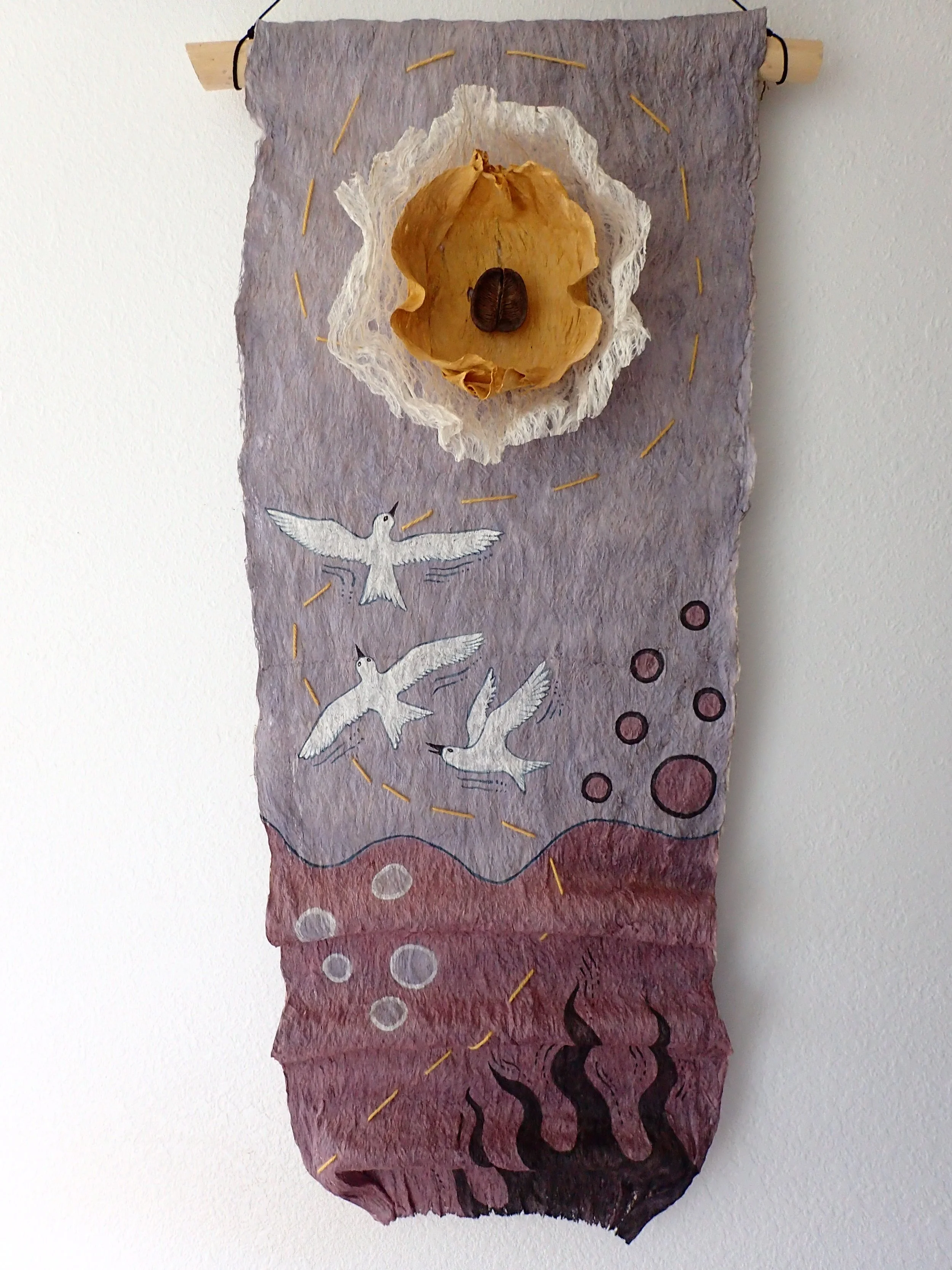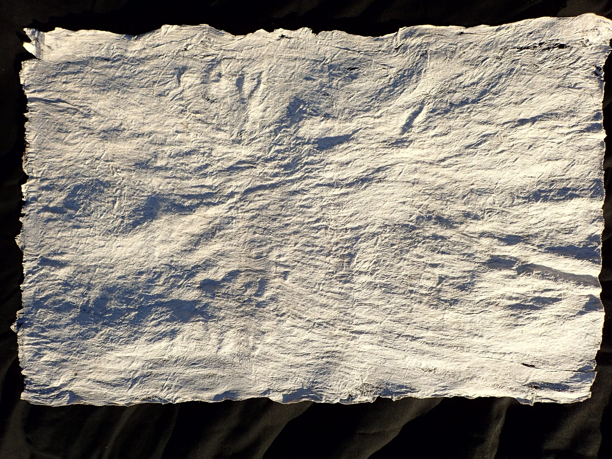 My kapa are crafted from wauke grown at my kumu Roen Hufford’s farm in Waimea. Each kapa is a story unto itself and a canvas carrying the messages of the plants and soils that color it.